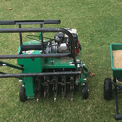 Core-Aeration helps relieve compaction of the soil and allows water, air, and nutrients to reach the root system of your lawn. This is done by pulling small plugs up from your lawn with an aeration machine. Combined with the aeration, over-seeding can dramatically revitalize your lawn. The optimal time to do this is in the fall.